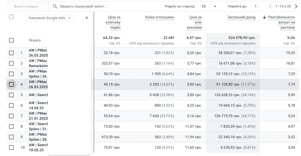 - Це Pmax кампанії на основі google merchant. Кампанії такого типу показали найкращий результат по ROI.